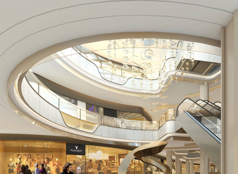 用中心空间序列的手法,减弱传统商场给人的单调及呆板的感觉,案例增强整体空间的表现,用以体现商业综合体的现代文化特征。