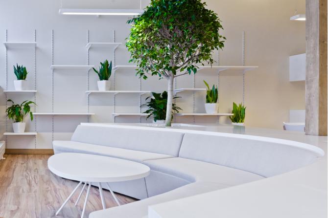 纯洁雅致的办公空间对员工办公也是一种享受,不用面对压抑的环境,愉悦的心情让办公的效率倍增,本案用纯洁的白色和生机的绿色结合,从色彩心理学的基础上让办公环境更符合员工的心理,回归自然!